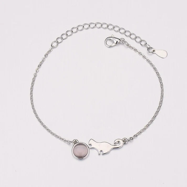 Fashion Ladies Cat Charm Bracelet Silver