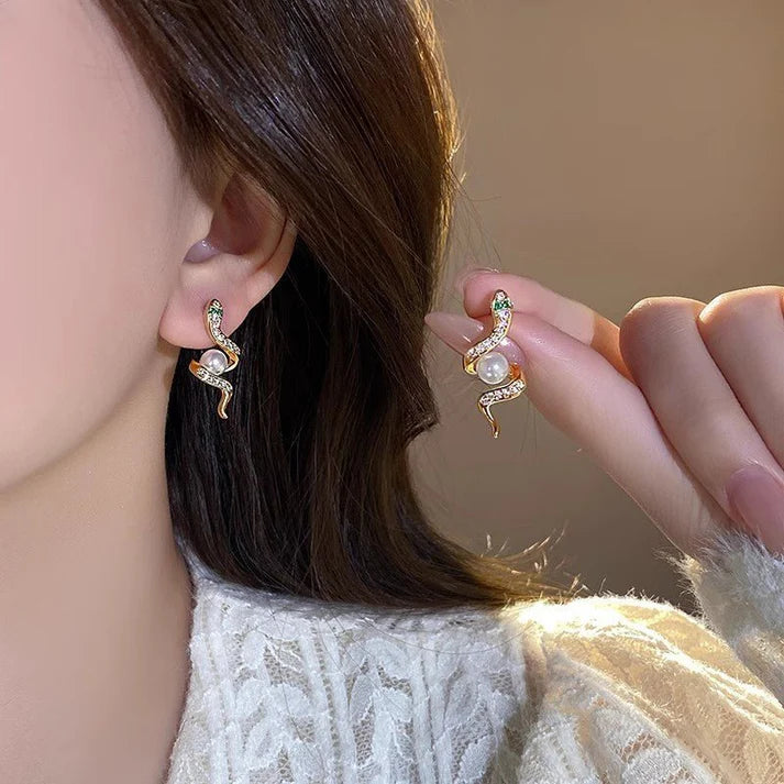 Exquisite Full Rhinestone Zircon Simulated Snakes Bead Stud Earrings For Women