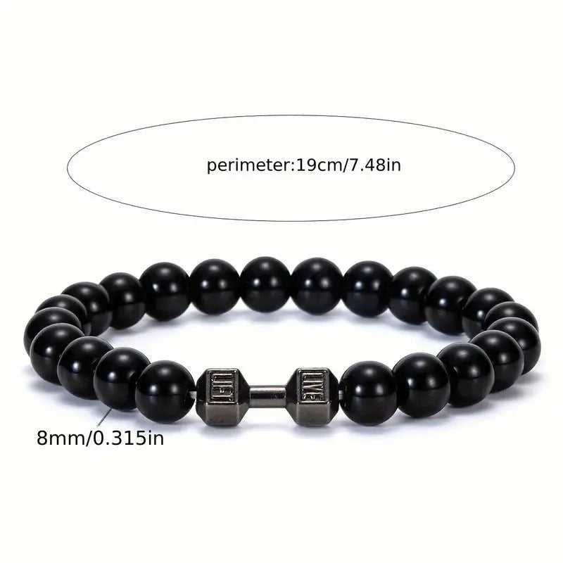 Silver Bracelet Elastic Bright Black Alloy Men's Dumbbell